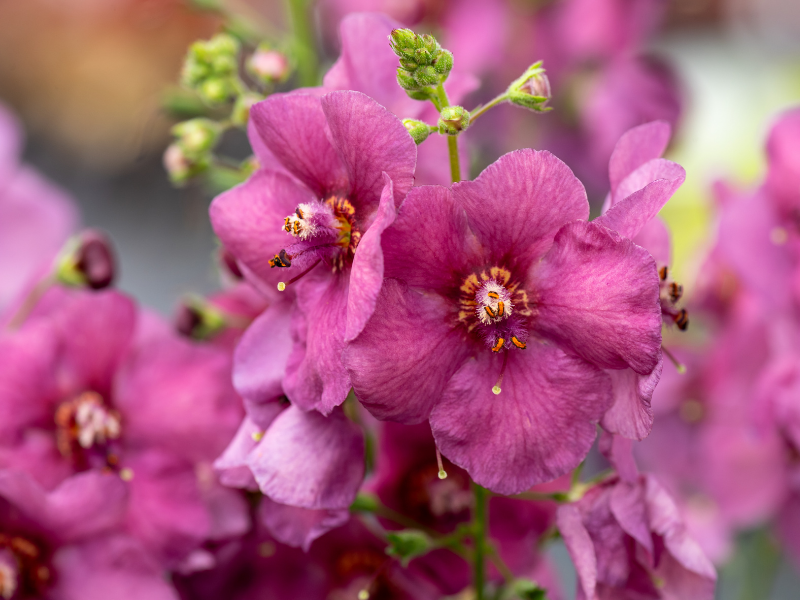 Dziewana Plum smokeyVerbascum ‘Plum Smokey’ (dziewanna ‘Plum Smokey’) to niezwykle efektowna, rzadziej spotykana odmiana dziewanny o unikatowych, śliwkowo‑purpurowych kwiatach. Jej barwa jest głęboka, dymna, z chłodnym odcieniem fioletu – zupełnie inna niż klasyczne żółte dziewanny. Roślina kwitnie długo, tworzy eleganckie, pionowe kwiatostany i świetnie sprawdza się w ogrodach naturalistycznych, preriowych oraz w kompozycjach z trawami.