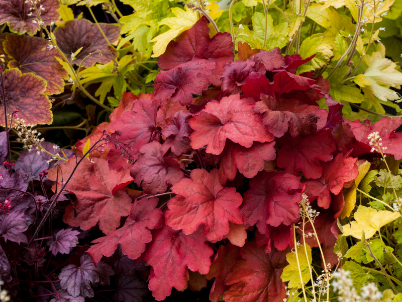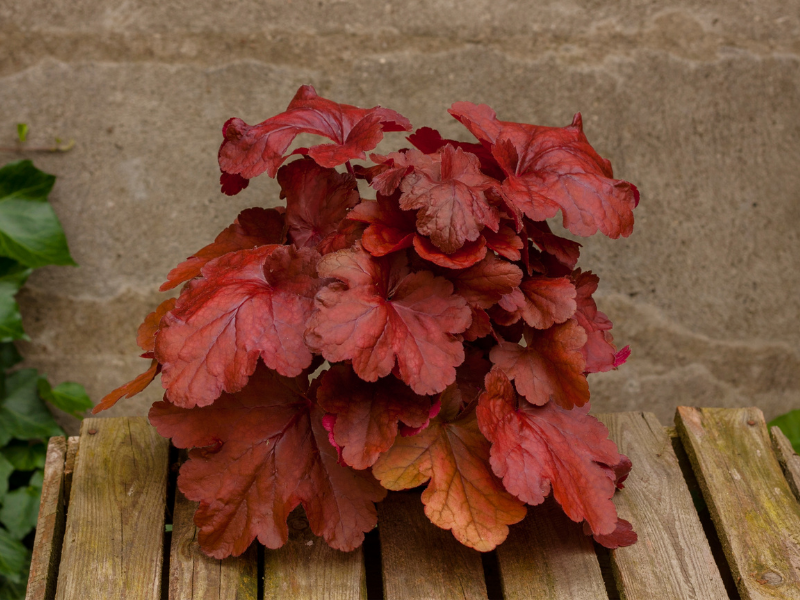 Żurawka 'Heuchera' Fire AlarmHeuchera ‘Fire Alarm’ (żurawka ‘Fire Alarm’) to jedna z najbardziej ognistych odmian żurawek – jej liście przez cały sezon utrzymują intensywne, czerwone barwy, które wiosną są jaskrawe, latem głębokie i nasycone, a jesienią wpadają w burgund. To odmiana o wyjątkowej stabilności koloru, mocnym wzroście i świetnej odporności, idealna do nowoczesnych rabat i kompozycji pojemnikowych.