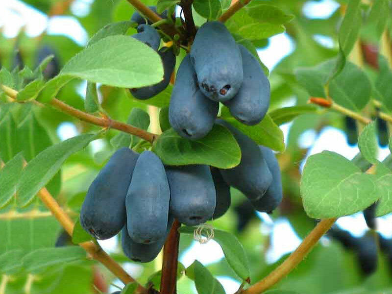 Jagoda Kamczacka'Lonicera caerulea' CzelabinkaJest to jedna z najbardziej popularnych odmian jagody kamczackiej. Owoce tej odmiany są barwy granatowej, bardzo smaczne o wydłużonym kształcie w smaku podobne do borówki amerykańskiej. Dojrzewają nierównomiernie, należy je zbierać często, w miarę dojrzewania, ponieważ nie zbierane same opadają. Pierwsze owoce pojawiają się w połowie maja.