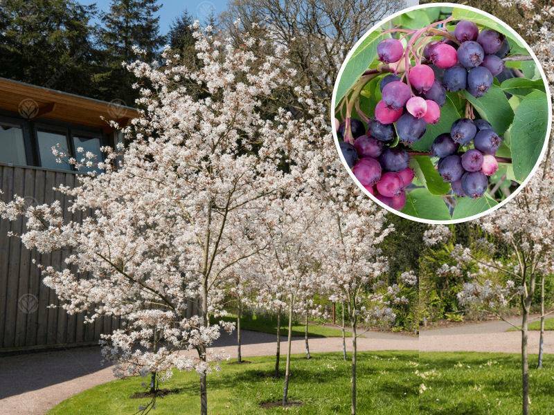 Świdośliwa na Pniu 'Amelanchier' SmokyJest to odmiana ozdobna i użytkowa która dorasta nawet do 4m wysokości. Pod koniec czerwca pojawiają się pierwsze owoce, które są bardzo słodkie, smaczne, purpurowo czarne. Jest to odmiana najobficiej plonująca.