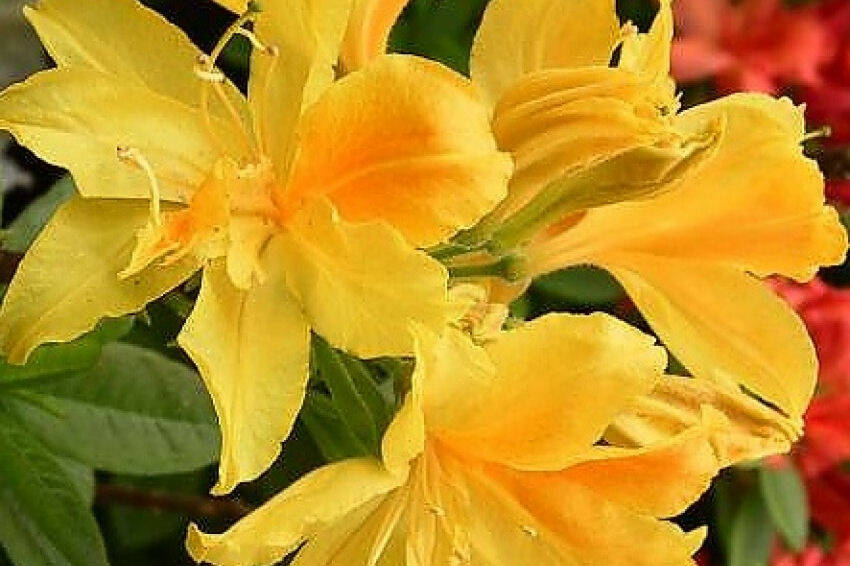 Azalia wielkokwiatowa 'Rhododendron' Żółta Na PniuDrzewko o średniej sile wzrostu nie regularnym pokroju. Jej kwiaty są piękne ,duże, o żółtej barwie, szeroko otwarte, o fryzowanych płatkach i ciemniejszym zabarwieniu na górnym płatku. Kwitną one bardzo obficie na przełomie maja aż do lipca. Żółta azalia szczególnie efektowana jest na tle ciemnej zieleni, w przydomowych ogródkach.