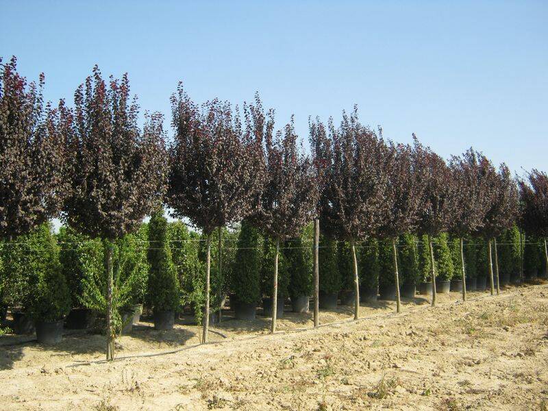 Sliwa Ozdobna Na Pniu 'Prunus CerasiferaŚliwy to drzewa owocowe jednak z czasem coraz chętniej zaczęto wykorzystywać je w ogrodach jako drzewka ozdobne. Największymi walorami dekoracyjnymi śliw ozdobnych są przede wszystkim atrakcyjne, pięknie wybarwione liście, ciekawy pokrój oraz liczne, białe lub różowe kwiaty, często pojawiające się na pędach jeszcze przed rozwojem liści.