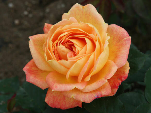 Róża Wielkokwiatowa 'Rosa' Pomarańczowa RozetaCenna ze względu na żywotność, głęboką barwę, bardzo pełnych kwiatów, silny wzrost. Stosunkowo odporna na mróz, krzewy na zimę wymagają kopczykowania. Kwiaty intensywnie pomaranczowe, duże ( sr.ok. 11 cm) bardzo pełne, trwale, osadzone pojedynczo lub po kilka na pędzie. Zapach średnio intensywny. Kwitnie od polowy VI i powtarza do jesieni. Krzew dobrze rozkrzewiony. Pędy sztywne, proste, kolczaste. Zastosowanie : doskonała na rabaty, kwietniki, w miejsca reprezentacyjne, na kwiat cięty. Odporność na choroby : mało wrażliwa na choroby, czasem porażana przez czarna plamistość.