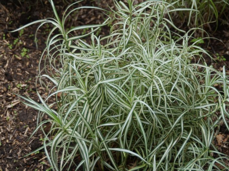 Turzyca palmowa 'Ice Fountains'Odmiana turzycy muskegońskiej o liściach z wyraźnym jasnym środkiem. Nadaje się doskonale jako roślina okrywowa na słoneczne i półcieniste, zdecydowanie wilgotne (lub nawet okresowo zalewane) obszary; świetna do obsadzania, maskowania i umacniania brzegów stawów, oczek wodnych, strumieni a także jasnych i wilgotnych miejsc w każdym ogrodzie. Okrywa ziemię gęstym jak futro kobiercem - chwasty nie mają szans. Posadzona w dużej kępie i zadomowiona dobrze znosi przeciętne ogrodowe warunki - stanowisko nie musi być podmokłe. Znana także jako „turzyca palmowa” - nazwa ta dobrze określa pokrój rośliny: liście zebrane na kształt palmy, miękko zwieszone.